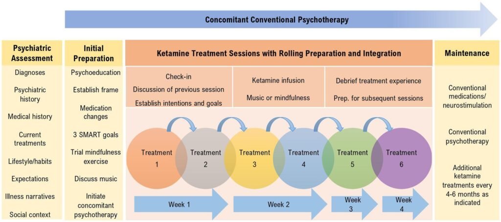 The Montreal Model of Ketamine Therapy is an intensive, evidence-based program that combines low-dose ketamine treatments with psychological support and behavioural changes to help patients recover from treatment-resistant depression (TRD). It aims to use the rapid but often temporary antidepressant effects of ketamine as a window of opportunity that, in synergistic combination with psychotherapy and psychedelic-like treatment settings, can facilitate lasting psychological growth and recovery.